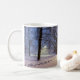 Panoramic view of evening winter landscape. View of covered in snow trees in park and street lights in Riga, Latvia