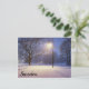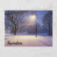 Street lights and covered in snow trees postcard