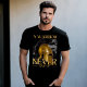 I give wanted to give this a 4 instead of a 5 because these Basic DARK T0shirts run unexpectedly SLIM or Narrow. Which is great if you do not have a potbelly, but I have a paunch. It isn't the shirt's fault that I've got a beer belly. The design and shirt itself is a quality cotton shirt. The color is more of a deep purple, but still a very pretty color. The Basic DARK T-shirts run a bit SLIMMER than the Basic Ts. The neck is a fraction narrower (or seems to be narrower) also. I'm a paunchy middle-aged woman and my neck is 12 inches (31cm) thick and the neckline fell about the same as in the photo of the man, and I had the desire to tug it a bit. So if you're a thick necked man or like loose shirts, be aware these are slimmer shirts. Once I get rid of my lockdown paunch it'll look great. The shirt washed well in cold water with no apparent bleeding. We don't have a dryer, so it hung dry. Did not shrink. Love the colors and the design. The design looks smaller on my shirt than it does on the model on-line. But still, it looks good on the shirt. The printing looks as it does on the model, just the size seems fractionally smaller. Washed garment in cold water, hung dry and design appeared unaffected.