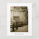 Postcard of a sepia photo of two old men in Italy having a discussion on the street with a fiat car in the background, thereby creating a scene just like in an italian mafia Godfather movie. The card has a white border with the text: 'Tuscany'. It is a vintage, stylish postcard.