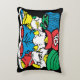 The cushion is small to medium sized. It can be washed. It is well constructed. The material used is pleasant and feels decent quality. It has a very slight plush feel which is good. It is well labelled and its care clearly stated. Theres nothing not to like about it. All in all a good item. The deduction of one star overall is due to long delays in delivery to the UK. It's not clear if this was due to Zazzle or somewhere else in the chain as I did not receive status updates of dispatch or progress. I cannot comment anymore on that other than to say that was our experience but it may not be the same for you. The printing was surprisingly close to what we were expecting. Its an art piece and on material so its hard to assess the precision of printing but it seems close to the original. The soft lines are reproductions of the original. The colour is a fair reflection of the painting. This was printed in the US and it looks like US quality. No issues.