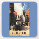Street View with Couple & Tower Clock Rail Square Paper Coaster