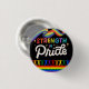 A delightful button showcasing a diverse group of individuals standing on a rainbow with the message "Strength in Pride" in rainbow-coloured letters. Ideal for gifting to your LGBTQ friends.