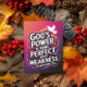 Boldly declares the truth of 2 Corinthians 12:9—"God’s power is made perfect in my weakness." The dynamic design features a glowing dove and radiant gradients of pink, orange, and purple, representing the divine strength that uplifts us in our moments of need.