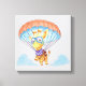 Stretched Canvas of a giraffe wearing a parachute. One of a series of three animals with a parachute.