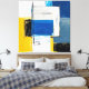 A burst of vibrant colours like yellow, blue, and white, interwoven with black strokes, forms an abstract composition reflecting chaos and balance. Paint layers suggest emotional depth and movement, inviting personal interpretation.