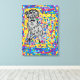 Stretched canvas print with my mixed media artwork. Pup sitting on picnic table.