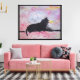Stretched canvas print with my artwork of black cat in window.
