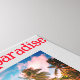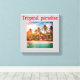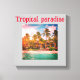 Stretched canvas tropical beach hotel design, complete with trees and foliage.