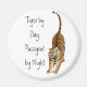 Original fine art design of a stretching Bengal tiger on a customisable round magnet by designer Carolyn McFann of Two Purring Cats Studio for big cat fans.