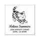 Cute cartoon illustration of a tabby cat having a good stretch. Customizable text.