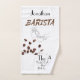 Striking Barista hand towel. Editable text so you can easily personalise your own name/business. You can clear any text to leave blank if you prefer.