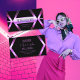 Make a lasting impression with this eye catching and elegant business card design featuring modern black geometric graphics with bright pink and purple shimmer background.