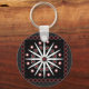 This colourful keychain, zip pull, features a bright eye catching design with a grey and red border, a white central motive and stars whithin. Bold, colourful and unusual. A great useful accessory to keep your keys safe and a lovely little gift.