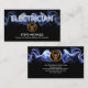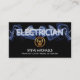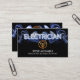 A luminous striking blue electric lightning zaps across the card's face. Riding the electrical wave is a "electrician" signage with a gold bulb logo just underneath. This is followed by your prestigious name and the contact details.