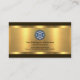 At the top left corner lies your prestigious name and a slogan caption to publicise your services. Riding the gold wave is a gold global logo you can use. At the base of the card is the business name and its contact details.