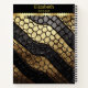 The intricate design of a black and gold snake skin showcases a mesmerising pattern that glistens in the light. The scales are arranged in a striking hexagonal formation, highlighting nature's artistry. MONOGRAM