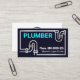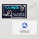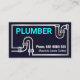 A blue cover features a faux silver plumbing pipes design. Over at the top corner lies your cyan blue business name "PLUMBER" which you can change to suit your own service needs. Towards the lower corner is your prestigious name and contact details.