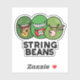 String Beans Funny Vegetable Pun features a cute trio of beans playing string instruments - guitar, electric guitar and banjo. Perfect pun gift for family and friends who love cute music bean puns.