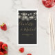 Black and gold elegant signature wedding design featuring pretty string lights and signature style names. These modern guest paper towels can be personalized with your information in chic gold lettering. Designed by Thisisnotme©