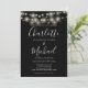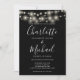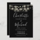 Elegant black and white signature wedding invitation featuring pretty string lights and signature style names, this stylish wedding invitation can be personalized with your information in chic white lettering. Designed by Thisisnotme©