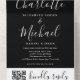 String Lights Black White Script QR Code Wedding All In One Invitation