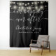 Featuring pretty string lights and chic typography script on a black background, this chic wedding photo booth backdrop can be personalized with your names and special date. Designed by Thisisnotme©