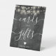 This string lights rustic black wood script cards and gifts sign is perfect for all celebrations. Designed by Thisisnotme©