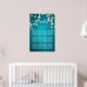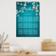 12 Tables Wedding Seating Chart Poster Templates - Elegant Lettering Script and Vintage String Lights with Turquoise Blue Glitter Sparkle Background.