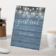 String Lights Blue Rustic Wood Script Guest Book Pedestal Sign