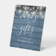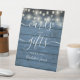 Featuring pretty string lights on a blue rustic wood background, this elegant cards and gifts sign is perfect for all celebrations. Designed by Thisisnotme©