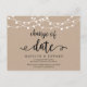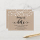 This is the modern minimal Rustic Kraft String lights, in Black font, Wedding party invitation Rescheduled (postponed / postponement) postcard (Change of dare) . It is the perfect to make the reschedule announcement to your friends and family.