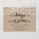 This is the modern minimal Rustic Kraft String lights, in Black font, Wedding party invitation Rescheduled (postponed / postponement) postcard (Change of plans) . It is the perfect to make the reschedule announcement to your friends and family.