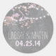 rustic wedding stickers - seals with grey and pink tree branches and hanging string of lights