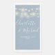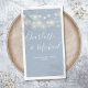 Dusty blue elegant signature wedding design featuring pretty string lights and signature style names. These modern guest paper towels can be personalised with your information in chic white lettering. Designed by Thisisnotme©