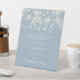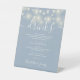 String Lights Dusty Blue Wedding Drinks Menu Pedestal Sign