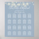 Featuring pretty string lights and signature style names, this elegant dusty blue seating chart can be personalised with your information in chic lettering. Designed by Thisisnotme©