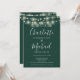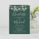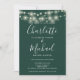Featuring pretty string lights and signature style names, this elegant emerald green wedding invitation can be personalized with all your special wedding day information on the reverse, including your RSVP, accommodation, and additional details. Designed by Thisisnotme©