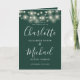 Emerald green signature script wedding program featuring pretty string lights and chic modern typography. This stylish wedding program can be personalized with your special wedding day information. Designed by Thisisnotme©
