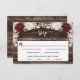 Complete your wedding stationery suite with this Rustic Burgundy and Blush Floral Wedding RSVP Card, featuring a romantic blend of deep red roses, blush pink florals, and lush greenery over a rustic wood background. Elegant white calligraphy and soft string lights add a cozy, country charm — perfect for barn, vineyard, or fall weddings.