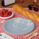 These stylish paper plates featuring pretty string lights and a hand-drawn floral can be personalised with your information in chic white lettering on a dusty blue background. Designed by Thisisnotme©