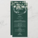 Featuring pretty string lights and rustic floral garland hand-drawn illustrations, personalise this stylish emerald green menu with your special wedding day menu information. Designed by Thisisnotme©