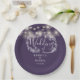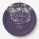 These stylish paper plates featuring pretty string lights and a hand-drawn floral can be personalised with your information in chic white lettering on a purple background. Designed by Thisisnotme©