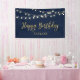 This simple chic birthday banner design features string lights graphics and gold script "Happy Birthday" on a navy blue background. You can customise the name and the background colour. If you need matching items, please contact me via email [ barabomdesign@gmail.com ]. Thanks!