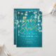 Baby Shower Invitation Cards Templates - Elegant Faux Gold Foil Lettering Script and Vintage String Lights with Turquoise Blue Glitter Sparkle Background.