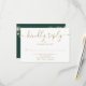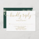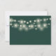 An elegant modern emerald green and gold signature script RSVP card with your details set in chic typography and pretty string lights on the reverse. Designed by Thisisnotme©