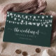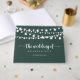 This string lights green calligraphy wedding guest book is perfect for a rustic wedding. The design features beautiful hand-painted string lights in a green background.