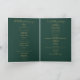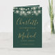 Emerald green and gold signature script wedding program featuring pretty string lights and chic modern typography. This stylish wedding program can be personalized with your special wedding day information. Designed by Thisisnotme©