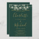 Elegant emerald green and gold rehearsal dinner invitation featuring pretty string lights and signature style names. This stylish invitation can be personalized with your information in chic lettering. Designed by Thisisnotme©