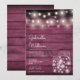 A stylish rustic wedding invitation featuring pretty string lights and mason jars. The happy couple's names are set in an elegant script above the special wedding details on a rustic burgundy wood background. The reverse features a matching rustic wood background. Designed by Thisisnotme©